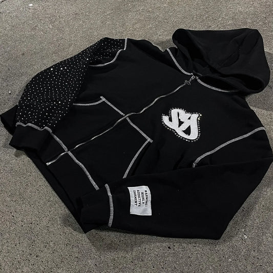 Y2K Oversized Hoodie – Embroidered Zipper Sweatshirt with Gothic Harajuku Vibes