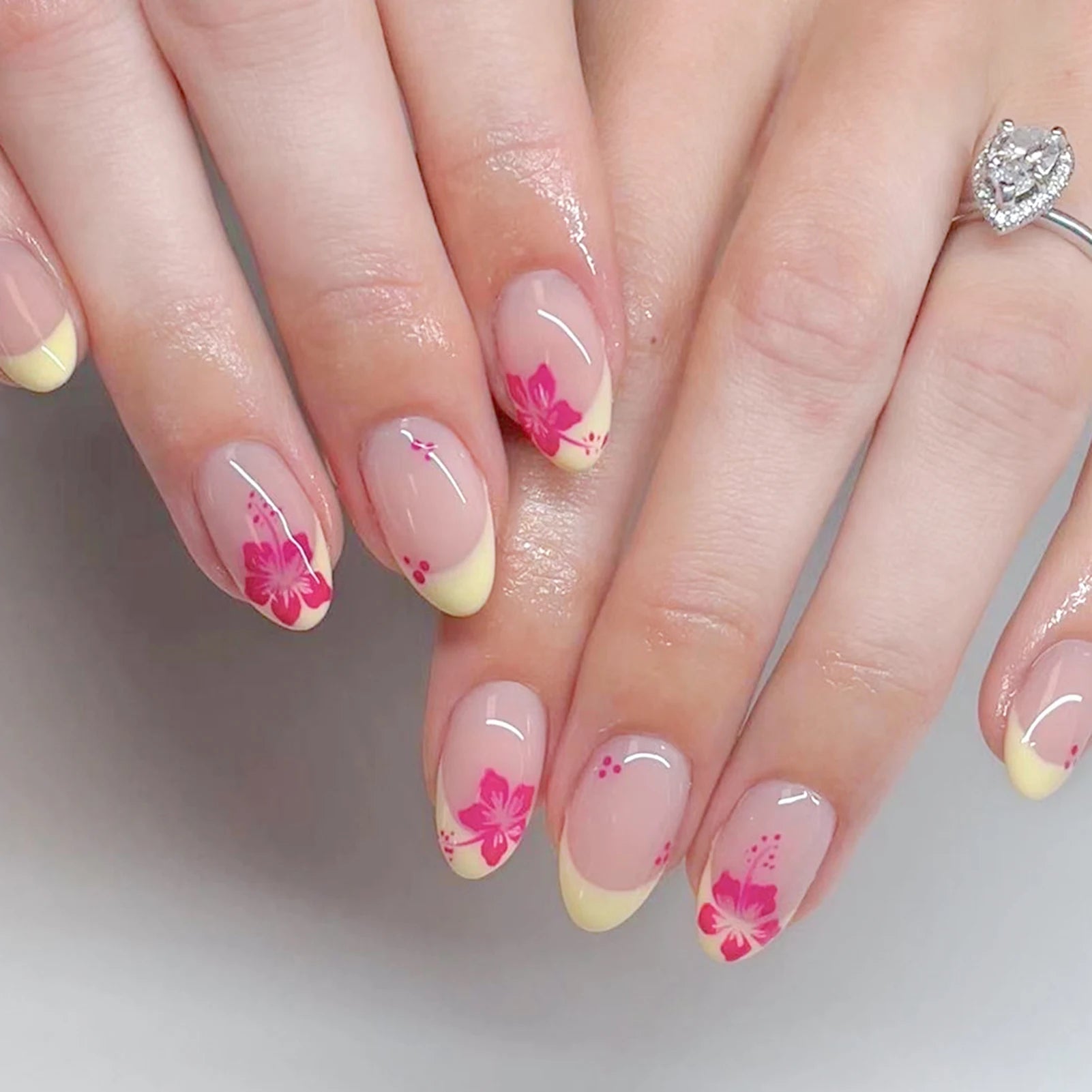 Chic Black French Press-On Nails with Pink Flower Charms – Stylish & Detachable Square Tips for Women & Girls
