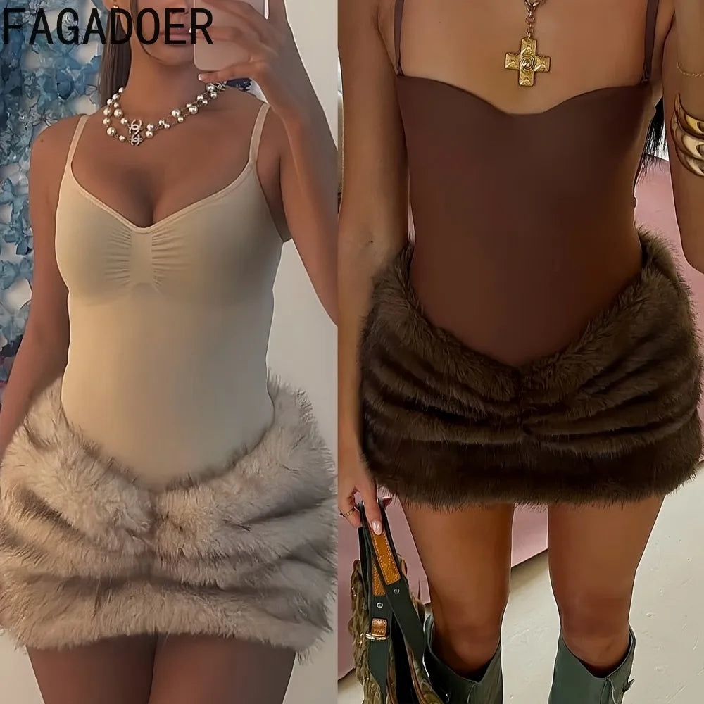 Velour Dreams 2-Piece Fur Trim Skirt Set