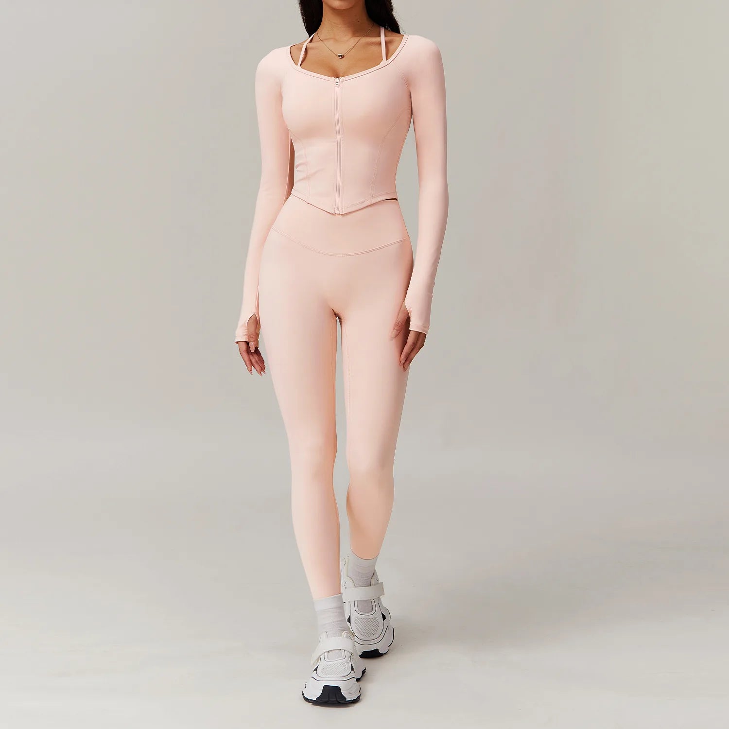 FitFlex 2-Piece Yoga Set: Long Sleeve Crop Top & High-Waist Leggings for Workout & Fitness
